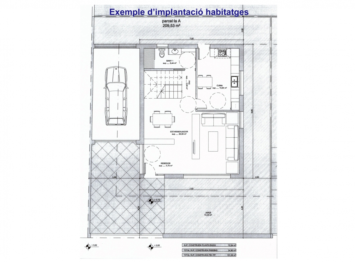 PARCELA AVDA. ROSALES, 34 ALELLA Según los datos topográficos, la superficie de la parcela es de 648 m2. En aplicación del artículo 238.2 de la normativa urbanística vigente, que admite una vivienda por cada 200 m2 de parcela, se pueden construir 3 viviendas. El coeficiente de edificabilidad es de 0,80 m2 st/m2 suelo, pero el artículo 241 establece que, cuando se agrupan dos o más edificaciones, el coeficiente de edificabilidad se reduce un 30%. Por tanto, el techo total que se podrá edificar será: 648 m2 suelo x 0,80 m2 st / m2 suelo - 30% = 363 m2 techo Por tanto, se pueden construir tres viviendas, con una superficie de 121 m2 cada una distribuida en planta baja y una planta piso y demás, según el artículo 238.11, se puede construir una planta sótano, que puede ocupar hasta un 50% de la superficie de la parcela, así como un altillo bajo cubierta cuyas dimensiones depende. En resumen, se pueden construir hasta tres viviendas, ya sea las 3 independientes o emparejando 2 y 1 independiente, cada una de ellas de una superficie construida de 121 m2 distribuida en planta baja y planta piso, más una planta sótano de unos 60 m2 y un altillo bajo cubierta de superficie a determinar.