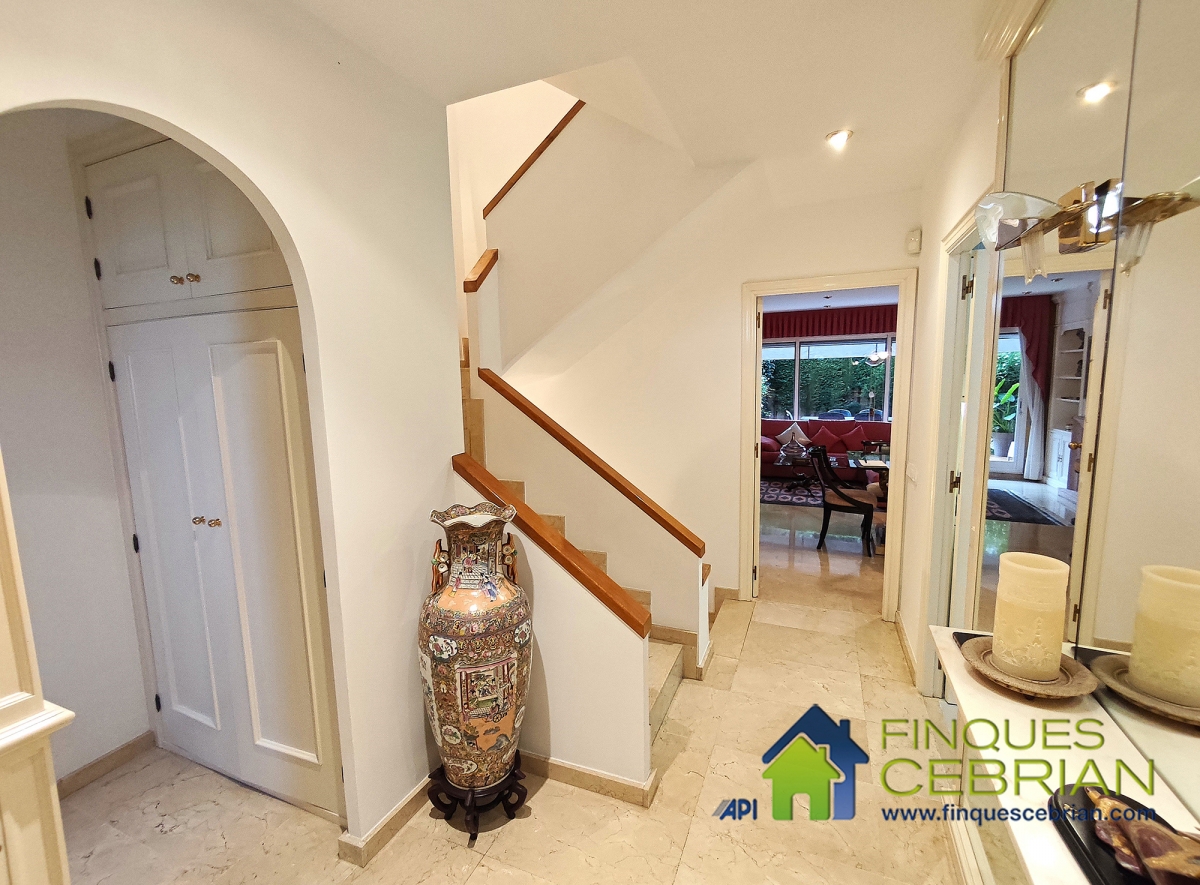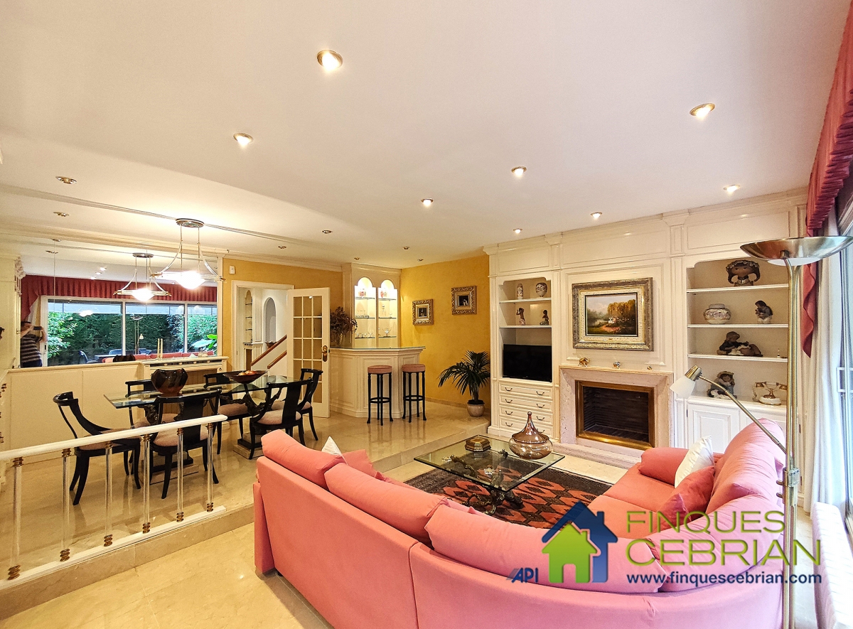 Magnífica casa adosada de 304m2 construidos, junto al centro de Alella. La casa está distribuida en 3 plantas más el garaje. En planta baja encontramos un aseo de cortesía, una cocina office muy espaciosa y luminosa, el salón , el comedor con chimenea, que tiene salida directa a la terraza y jardín. En la primera planta encontramos una sala polivalente muy espaciosa, con grandes ventanales y aire acondicionado. También se encuentra el dormitorio principal (suite), con un gran vestidor y baño completo con bañera. En la planta superior encontramos un espacioso estudio, un aseo de cortersia, un baño completo con bañera y 2 dormitorios de matrimonio con armarios empotrados, que acceden a una terraza que comparten. En el sótano encontramos el garaje para 3 coches, una zona de lavadero con caldera de calefacción y agua caliente de gas natural, y un trastero.